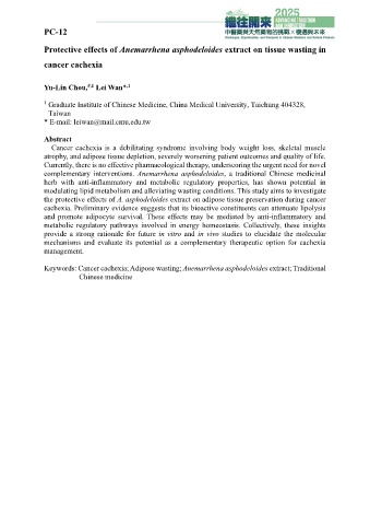 Keywords: Cancer cachexia; Adipose wasting; Anemarrhena asphodeloides extract; Traditional