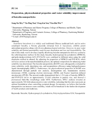 Keywords: Baicalin; Hydroxypropyl-β-cyclodextrin; Polyvinylpyrrolidone K30; Nanoparticle