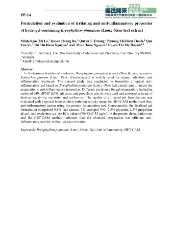 Keywords: Bryophyllum pinnatum (Lam.) Oken; Gel; Anti-inflammatory; HET-CAM