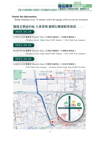 Shuttle Bus Information: Shuttle Schedule (every 15 minutes, staff with signage will be on site for assistance) 5