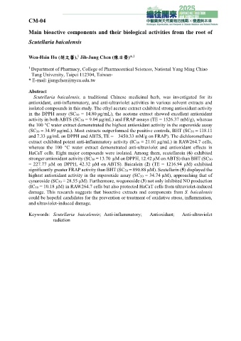 Keywords: Scutellaria baicalensis; Anti-inflammatory; Antioxidant; Anti-ultraviolet