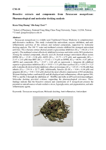 Keywords: Taraxacum mongolicum; Molecule docking; Anti-inflamation; Antioxidant