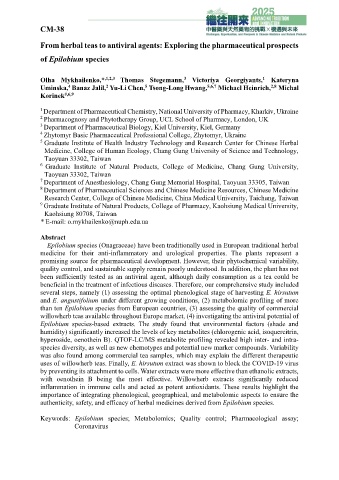 Keywords: Epilobium species; Metabolomics; Quality control; Pharmacological assay;