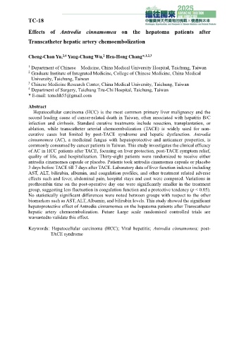 hepatoprotective effect of Antrodia cinnamomea on the hepatoma patients after Transcatheter